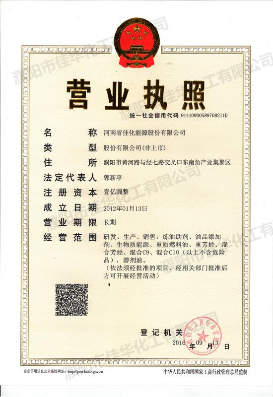 濮陽市佳華化工有限公司始建于1997年,公司注冊資金5300萬元,控股創建河南佳化能源有限公司,注冊資金1億元。目前,公司現有員工162人,其中中高級科研人員38人,占地面積160余畝,2015年實現銷售收入6.86億元,創匯2600萬元,已發展成為集研發、生產、銷售于一體的國家級高新技術企業。   成立19年來,公司積極與中國科學院、中國工程院、中國石化石油化工科學研究院、中國石油大學、華東理工大學等科研院所和高校合作,專業致力于煉油助劑、油品添加劑及高品質油品調合組分的研發與生產, 依托院士工作站研發平臺,瞄準科技前沿,致力于新型、環保煉油助劑和油品添加劑的研發與生產,取……